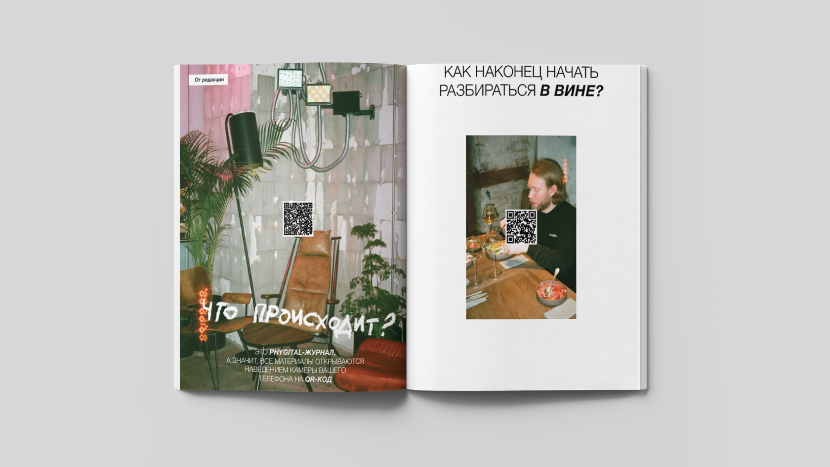 Отныне «Сквот» — это не только винная на Солянке, но и одноименное ежемесячное издание: команда be agency запустила phygital-журнал «для своих», выпуски которого будут посвящены вину, людям и свободе. Выбранный нами формат работает на стыке реального и виртуального миров: термин является производным от слов physical и digital, и чтобы увидеть материал, необходимо навести камеру телефона на QR-код печатного журнала.